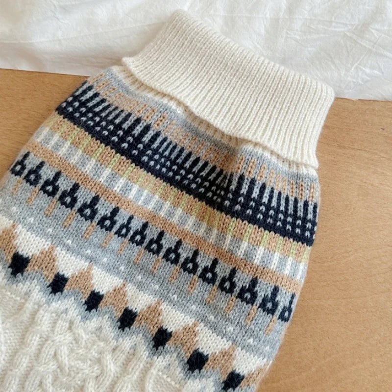 Jersey de Punto para Perros con Cuello Alto - Suéter Cálido de Invierno Estilo Retro